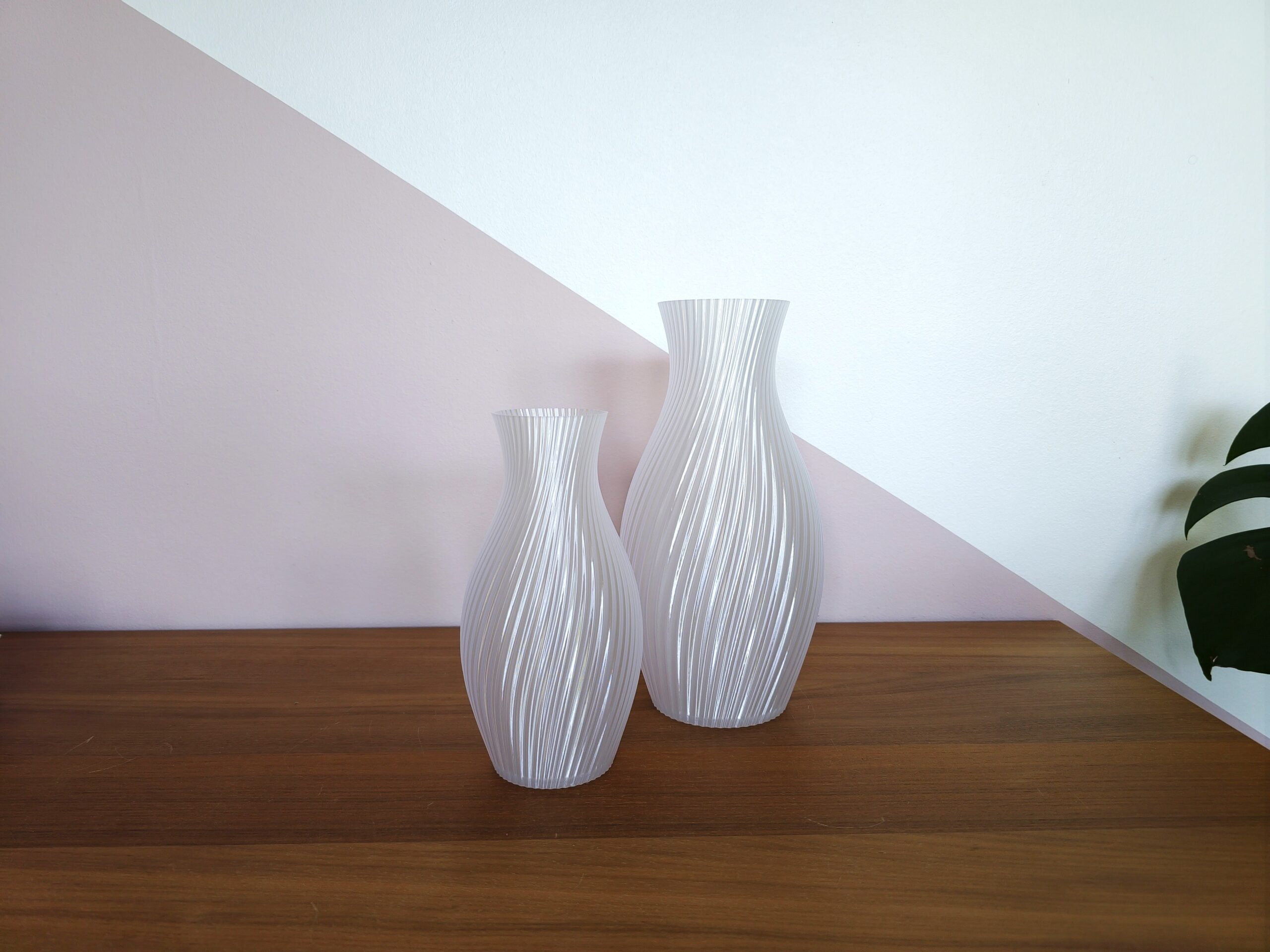 Vasen er 3D-printet i PETG-plast, som er mere robust og bedre til at modstå varme i fx en vindueskarm. Det gør det til et holdbart og ansvarligt valg.