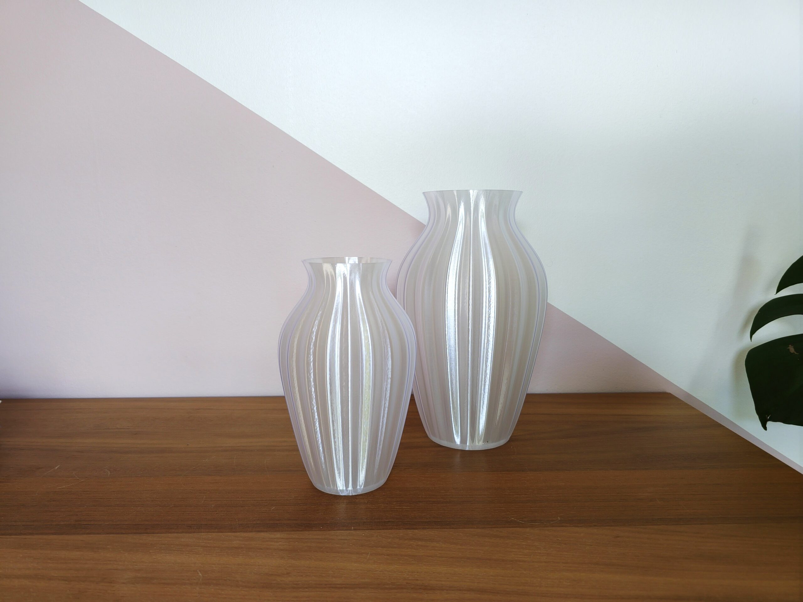 Vasen er 3D-printet i PETG-plast, som er mere robust og bedre til at modstå varme i fx en vindueskarm. Det gør det til et holdbart og ansvarligt valg.
